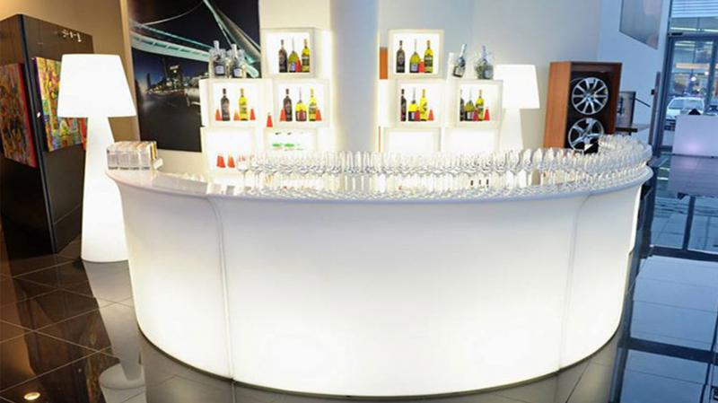 Bar design lumineux en polyéthylène blanc pour créer une ambiance lounge et design